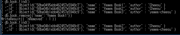 > db.book.remove({"name": "Yamea Book1"}) |