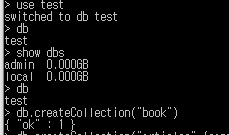 > db.createCollection("book") |